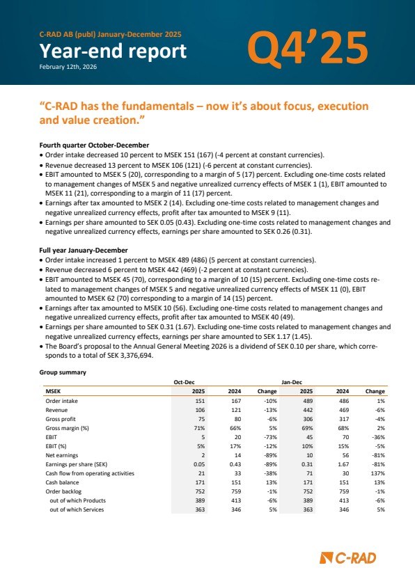 C-RAD will hold a telephone conference at 11:00 am (CET) Thursday, February 12, 2026.